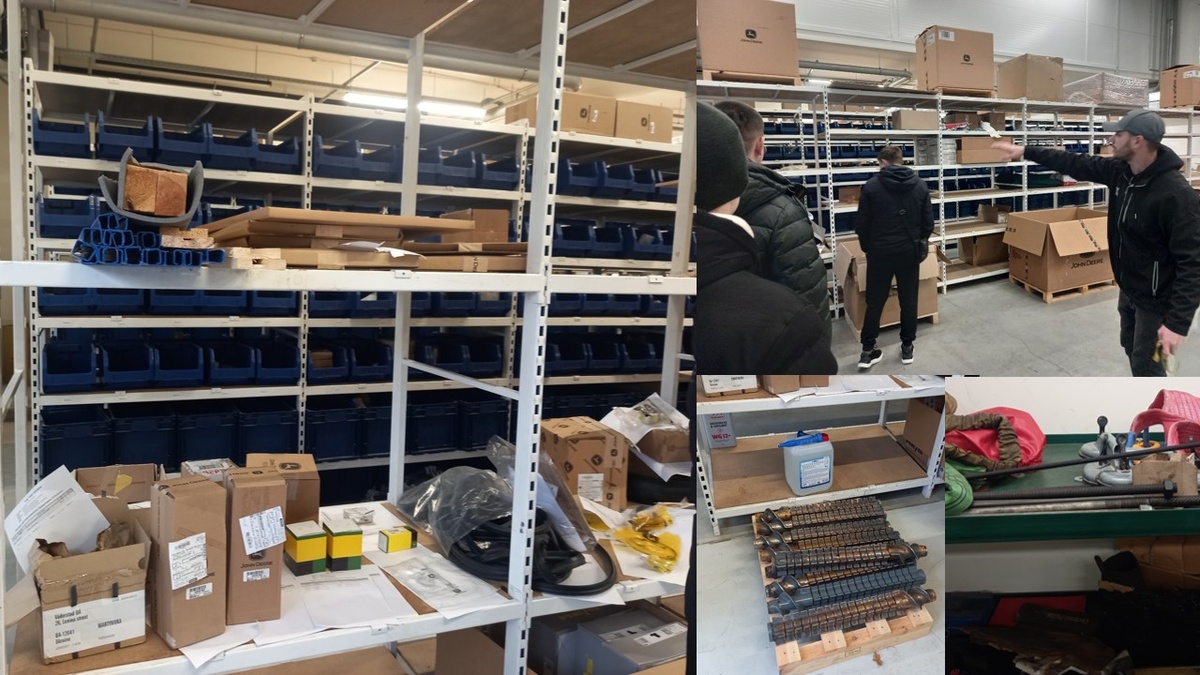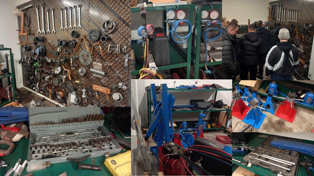 Також студенти ознайомились із роботою складських приміщень запчастин. Особливу увагу приділено організації спеціалізованого інструменту та його обліку, оскільки правильна логістика запчастин та облікова система є запорукою мінімізації часу простою техніки та якісного ремонту відповідно до заводських стандартів.