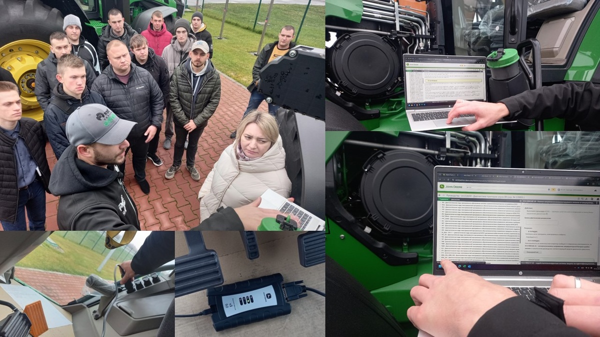 Студенти детально вивчили, як сучасні технології підвищують надійність техніки. У блоці діагностики вони ознайомились із роботою в John Deere Operations Center та системою JDLink, які дозволяють здійснювати дистанційний моніторинг техніки та забезпечувати прогнозне обслуговування (Predictive Maintenance). Було продемонстровано, як інженери використовують спеціалізоване діагностичне програмне забезпечення (Service Advisor), підключене до техніки, для зчитування кодів несправностей, контролю параметрів CAN-шини та високоточного калібрування трансмісій.